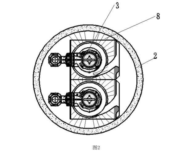 本實施例中,優選的,導爪12與導靴為一體式結構,是為了使泵3通過導爪12掛在出水支撐座5上時不會出現因導爪12安裝不牢固造成泵3滑動脫落使預旋盆8被損壞影響設備的正常運行。